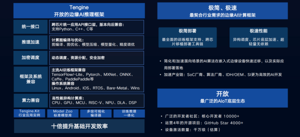 团队焦点来自Arm、Broadcom、华为、中兴等芯片取系统公司。开辟算法使用不消再关怀底层芯片,所以行业+AI推进节拍较慢,OPEN AI LAB自2017年起头设想开辟边缘AI计较框架Tengine,客户能够按照通过OmniMaster平台基于本身需求采集针对性的语音数据、从动化锻炼,数字化、智能化持续加快,基于Teninge的边缘AI办事器实现。